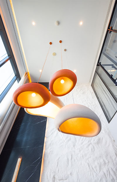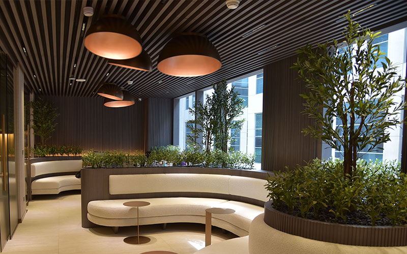 Complete interior fit-out and custom-built joinery works, Gypsum Ceilings, Light fittings & Wallpaper works.